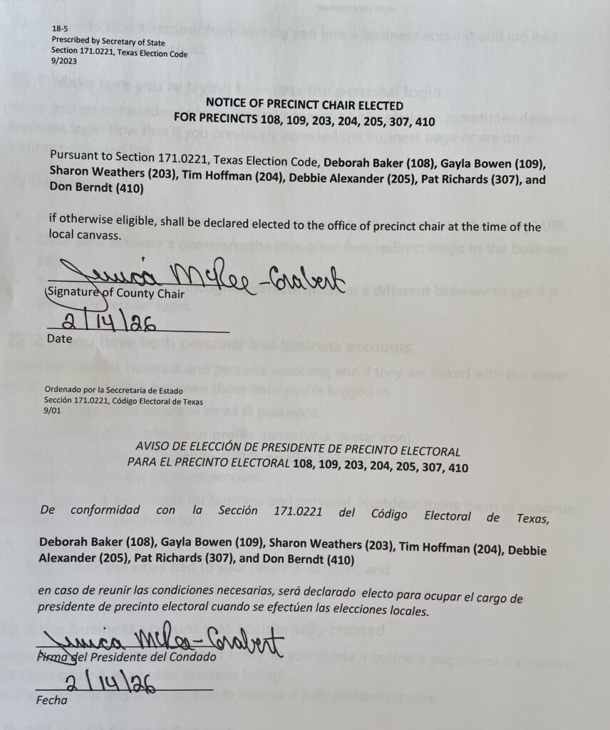 Notice of Precinct Chair Elected